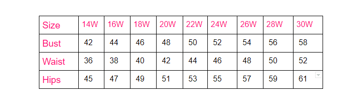 كل جدول مقاسات خاص بكل فستان. قيسي نفسكِ وقارنيه بجدول المقاسات.